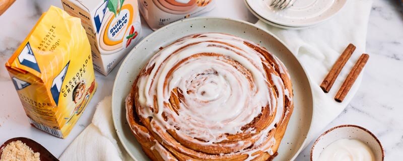 Cette version géante du roulé à la cannelle classique est parfaite à partager avec des amis ou en famille. Les couches de pâte moelleuses et légères sont généreusement garnies d’un mélange onctueux de cannelle et de sucre, ce qui diffuse un parfum délicieux dans la maison pendant la cuisson.